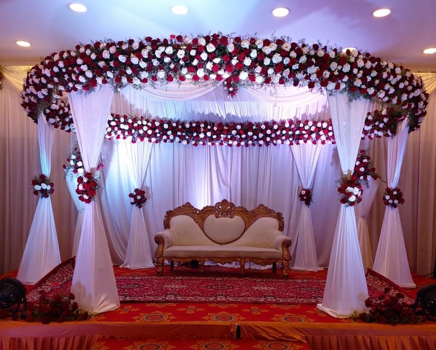 We recommend booking your Fresh Flower Stage Decoration Price at least 2 to 4 weeks before your celebration date — especially during peak wedding and festive season (November to February and April to June). Early booking ensures availability of your preferred style and allows us adequate time to source the finest flowers and fabrics for your occasion.